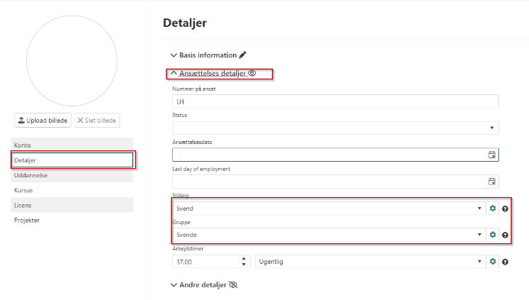 Gå i fanen detaljer -> Ansættelses detaljer og tjek stilling og gruppe.