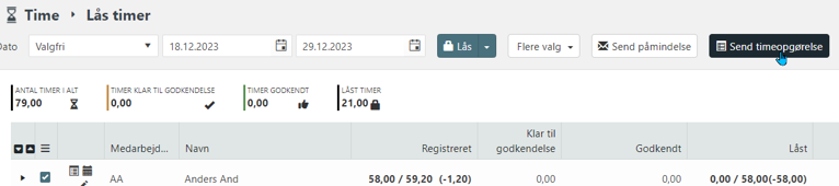 Send timeopgørelse over timer overført til lønbehandling