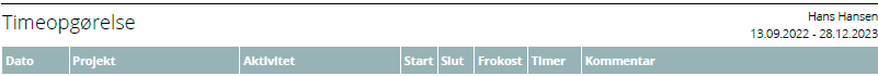 Når timerne er låst og klar til lønbehandling sendes der en timopgørelse som beskrevet ovenfor.