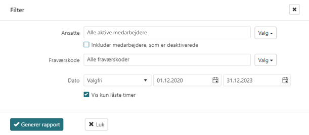 Vælg om rapporten skal vise kun låste eller alle timer