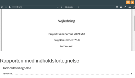 Lav en rapport i PDF med/uden forside og indholdsfortegnelse. Vælg projektet -> KS -> Rapporter -> KS