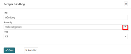 Skal der ændres i en håndbog, som du ikke er ansvarlig for. Tryk på Åbne og Rediger håndbog