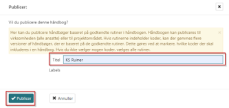 Skal håndbogen publiceret som Projektrutine, skal den først lægges på projektet.