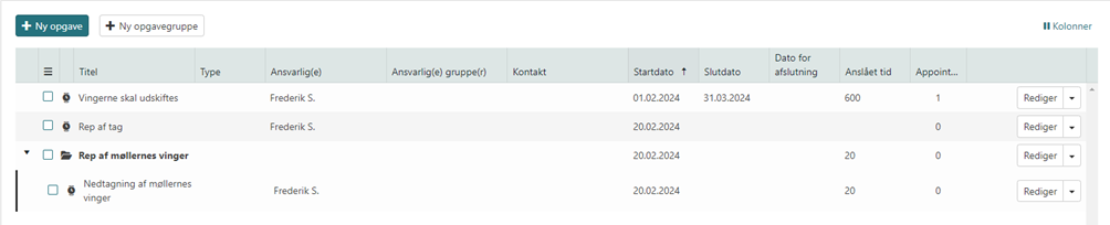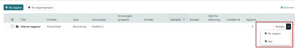 Klik rediger på den oprettede opgave eller dobbeltklik