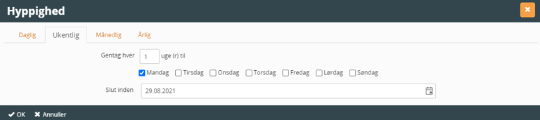 Når der trykkes på rediger, kan man selv påsætte start og slut dato.