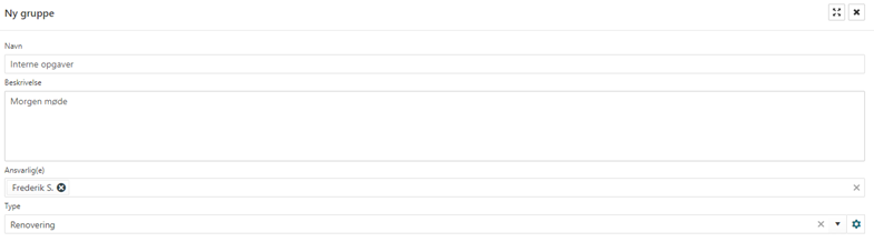 Der kan oprettes en gruppe pr. ansvarlig. Ansvarlig foreslås efterfølgende ved oprettelse af opgaver fra opgavegruppen.