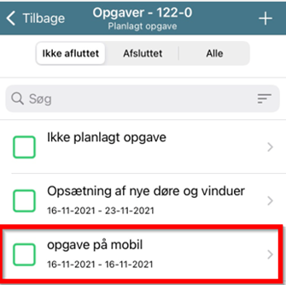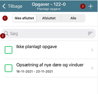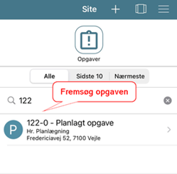 Ønskes et overblik over alle opgaver, trykkes på ikonet Opgaver i Site App'en.