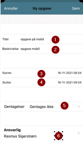 3. Ved tryk på + plus, kan man oprette egne opgaver