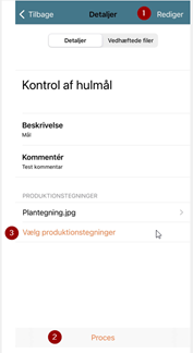 - Der kan tilkobles produktionstegninger til kontrollen. Tegningerne skal være tilknyttet projektet, for at kunne vælges.