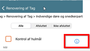 Klik på informations cirklen på kontrolpunktet og få flere muligheder