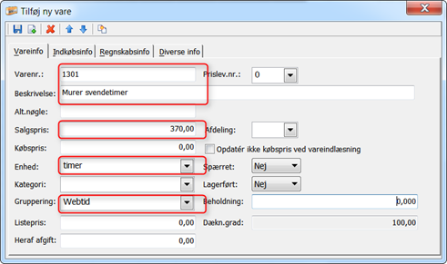 Til sidst skal du retur på den lønart du oprettede og tilføje varenummeret du lige har oprettet: