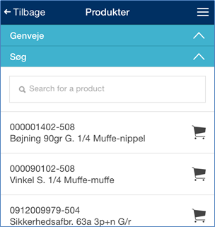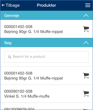 Varer hvor du har aktiveret knappen Genvej vises øverst