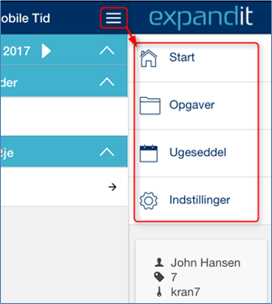 Vælges Ugeseddel via menuknappen, ser du øverst en summering af dine timeregistreringer for den aktuelle uge.