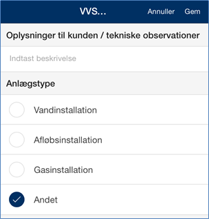 Når du har valgt en sag, vælges øverst hvilken type registrering du ønsker at foretage. Der kan kun vælges den type registrering der er valgt i din virksomheds licens.