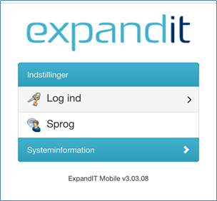 Indstillinger: Vender tilbage til login-billedet, hvor der bl.a. kan vælges sprog