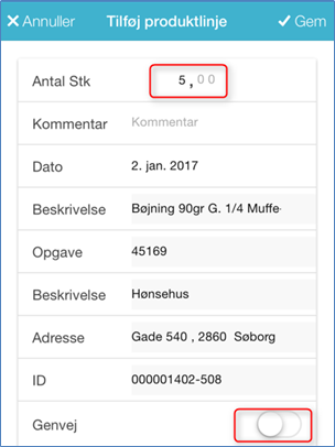 Ønsker du den aktuelle vare gemt som en genvej, aktiveres knappen nederst i skærmen