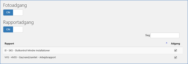 Rapportadgang giver adgang til udfyldelse af 2 forskellige rapporter på sagerne. Vælg hvilke rapporter der ønskes adgang til.