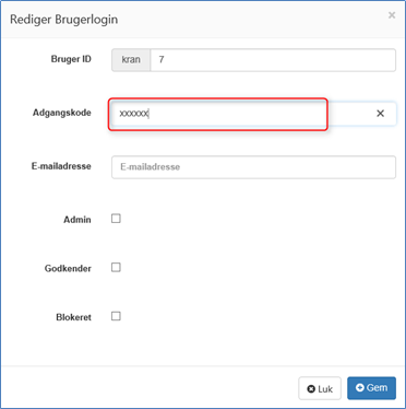 Nu kan ny adgangskode indtastes – tryk på Gem i bunden: