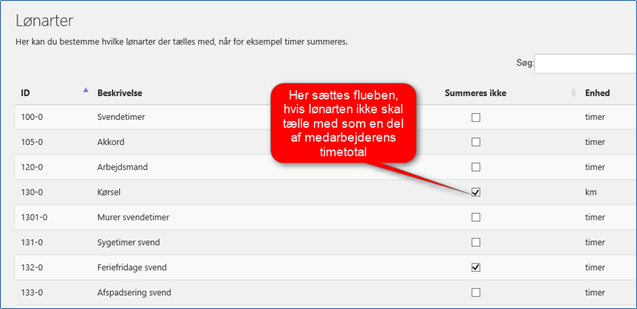 Summeres ikke – alle lønarter der ikke er timer, eller som registreres som tillæg – det kan f.eks. være overtidstillæg, kørsel, diæter eller SH-dage, skal markes i kolonnen Summeres ikke – så tælles de ikke med som timer på ugeseddlen.