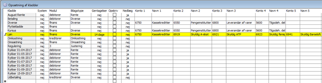 På samme måde kan du lave finanskladder til bogføring af månedsløn, periodiseringer, afskrivninger m.m.