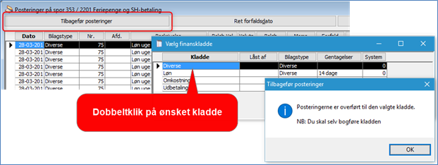 - Dobbeltklik på den kladde posteringerne skal overføres til