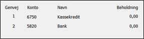 I dette tilfælde vil jeg bruge kladden til bogføring af min 14-dages løn. Derfor har jeg valgt 5 genvejskonti, hvor jeg kan holde øje med saldoen på mine skyldige konti vedr løn: