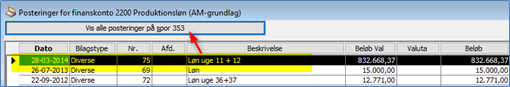 3: Ved at klikke her, ses posteringer på den aktuelle konto, valgt under ID