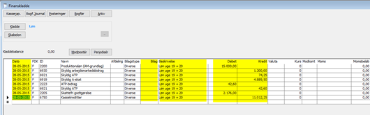 Gå nu i finanskladden og vælg din nye kladde. Indtast dit 14-dages lønbilag med korrekt dato, bilagsnr, tekst, beløb o.s.v. Ganske som du plejer.