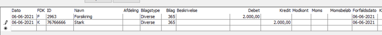 - Gå ind i kladden via Finans -> Finanskladde, her ligger de overførte posteringer, med modsat fortegn af det oprindelige bilag. Kladden bogføres på normal vis.