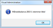 Der skal være balance pr. måned der posteres i. Dvs. at indtastede posteringer over flere måneder, skal posterne balancere for hver måned, ellers kommer denne fejlbesked ved bogføring: