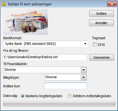 • Fra sti og filnavn: Udpeg den fil du tidligere udlæste fra banken.