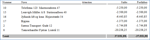 (findes under Debitor -> Debitor udskrifter-> Saldolister)
