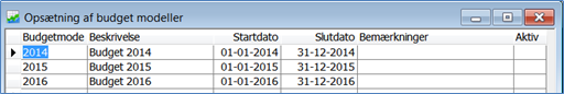 Øverst vælges budgetmodel du vil arbejde med. Tryk på "OK", og start- og slutdatoer udfyldes automatisk: