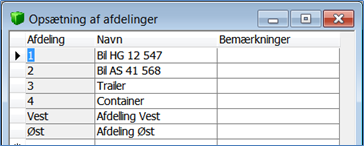 Ved brug af Afdelinger, har du mulighed for at fordele dine finansposteringer på forskellige afdelinger. En afdeling kan være en geografisk afdeling, en fagopdeling i firmaet, eller f.eks. til styring af bilregnskaber, hvor hver bil er oprettet som en afdeling.