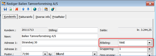 Du kan på dine debitorer vælge forslag til afdeling, som vil blive ført med over på sager og fakturaer til den aktuelle kunde: