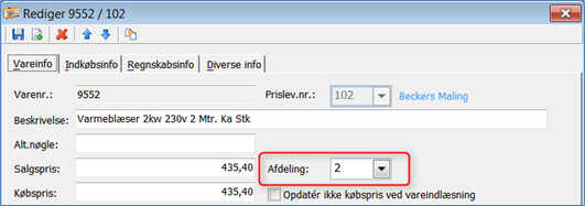 Du kan på dine varer vælge forslag til afdeling, som vil blive anvendt på salgsfakturalinjer:
