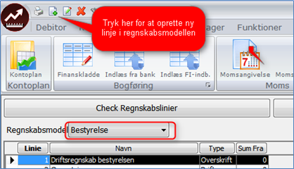 Klik på den lille firkant ud for Regnskabsopstillinger for at oprette modellerne (klassisk menu: Finans ->Opsætning -> Diverse -> Regnskabsopstillinger)