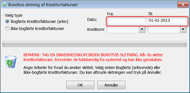 Her kan slettes bogførte fakturaer, samt kreditorfakturaer der endnu ikke er bogført.