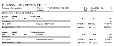 BEMÆRK: Når et regnskabsår er komprimeret, vises kun årets samlede saldi i kontospecifikationen.