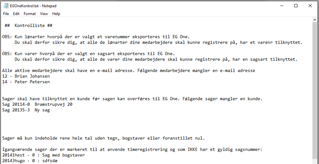 Kun sager med flueben i brug tidsregisterering overføres til EG Go.