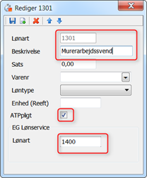 Hvis du benytter EG Lønservice, skal du huske at indtaste Lønservice's Lønartsnummer nederst. Det er til de timer, der skal overføres til lønbehandlingen.