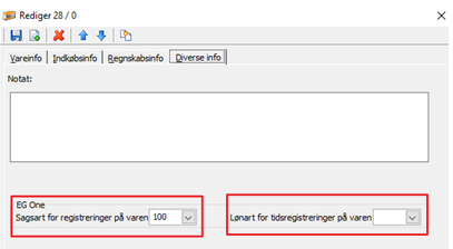 Luk sagskladden og gå i Varer -> Vareoversigt. og sæt korrekt Sagsart og Lønart på under fanen Diverse info. Salgspris skal evt. også sættes på varen.