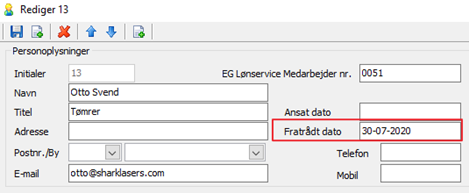 Find medarbejderen og sæt en fratrådt dato på medarbejderen og gem