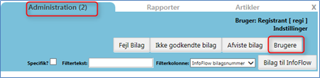 Log på InfoFlow som administrator. Foroven vælges Administration. Klik derefter på knappen "Brugere":