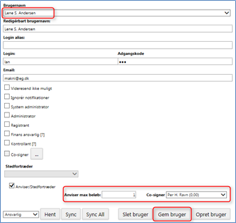 • Vælg derefter den bruger der skal være co-signer for den valgte bruger.