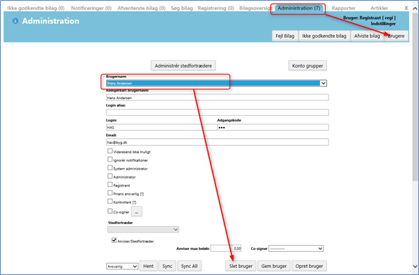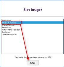 Vælg bruger der skal slettes, og tryk på knappen "Slet bruger":