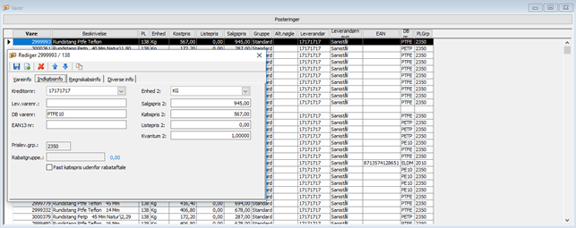Alt.nøgle er eget interne varenr./søgetekst. Ved registrering (f.eks. på fakturalinje) skrives tegnet < + Alt.nøgle, i stedet for varenr. Ovenstående vare kan f.eks. findes ved at skrive <mel12.