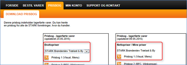 Log på Byggepartner. Kører du Visual Online skal du logge på fra dit eget lokale skrivebord. Når du er logget på vælges Prisbog -> Download Prisbog. Du skal tage stilling til om du ønsker nettopriser indlæst eller bruttopriser. Vælger du nettopriser er det dit eget ansvar at få dine salgspriser reguleret med en avance