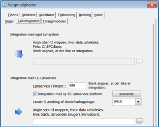 Integration med egen Lønsystem: Udfyldes kun hvis ikke man anvender integration til EG Lønservice
