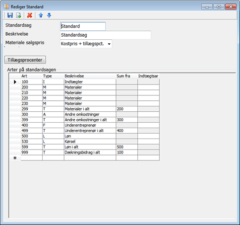 OBS: Hvis Arten skal bruges på en eksisterende sag, kan den manuelt indtastes på sagen. HUSK i så tilfælde også at indtaste tillægsprocent på sagen manuelt!!
